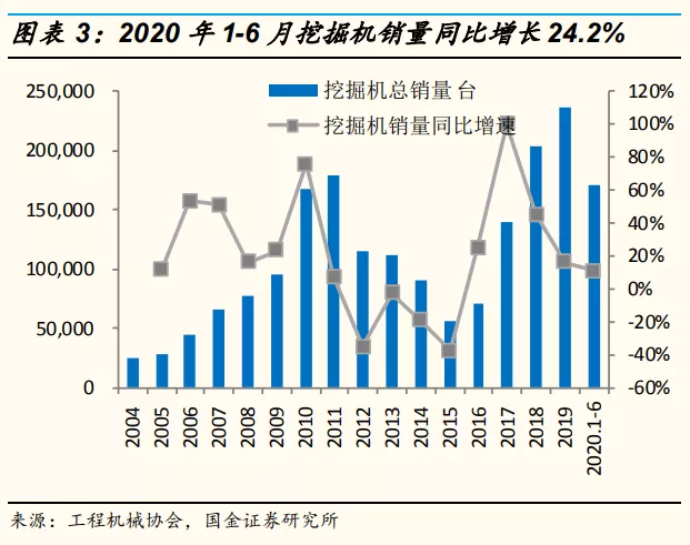 基建持续发力,6月挖机销量同比大增63%——业内人士预计,按此趋势全年挖掘机销量有望接近30万台,销量增速有望超25%。