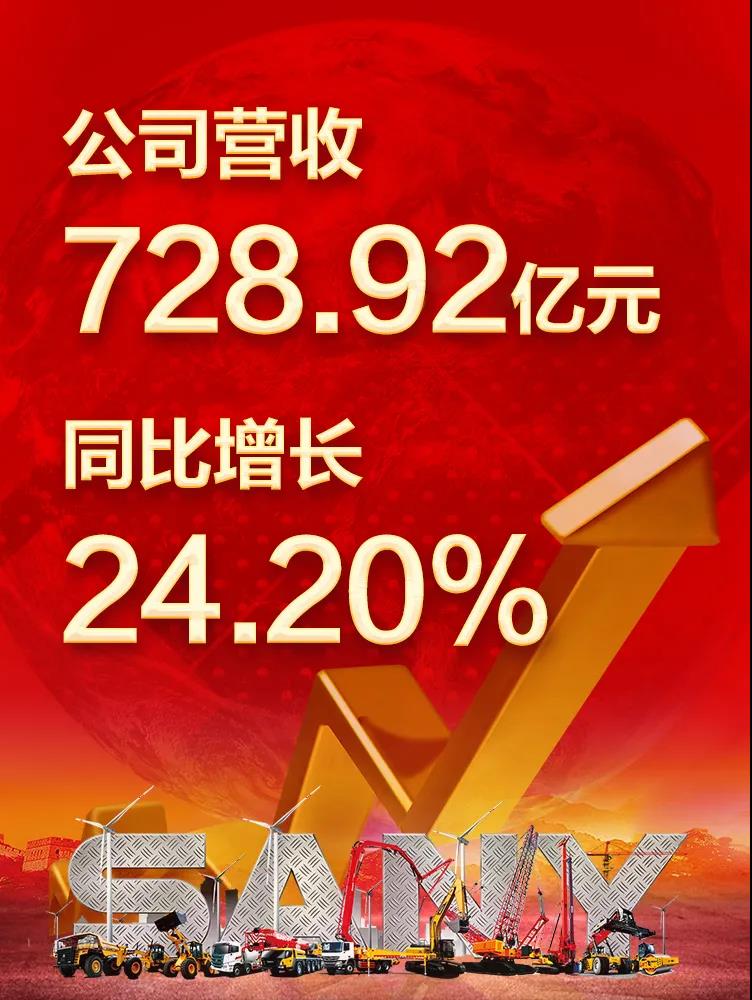 报告显示,受益于国内基础设施建设、环境保护力度加强、设备更新需求增长、人工替代效应等因素推动工程机械销售增加,同时公司产品竞争力显著提升,公司行业龙头优势持续发力,各项主要经营指标屡创历史最佳记录。