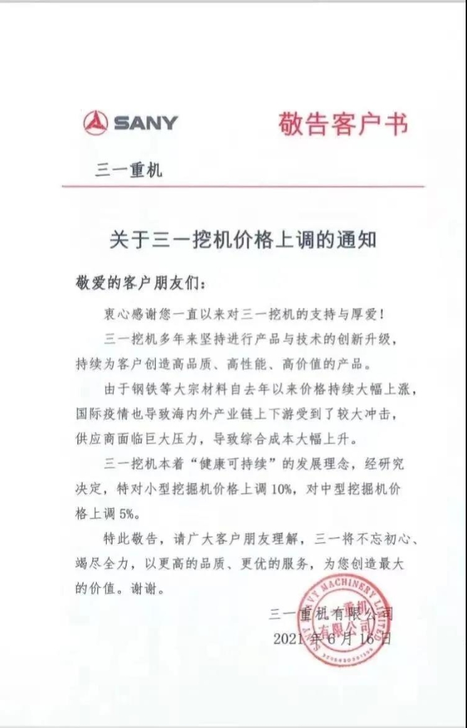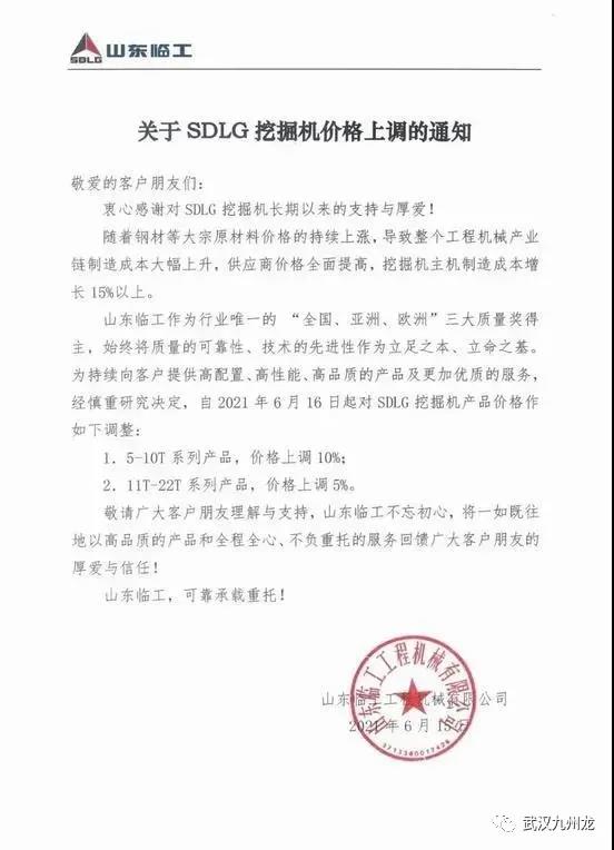 对不起 我们要涨价了…… 时间:2021.06.18 2294 字号 其他其他工程机械厂家 返回列表 上一篇 2021.06.30 成功交付!!!武汉德赢VWIN首台自主研发生产水陆两栖挖掘机优势尽显 下一篇 2021.06.18 三一重机中挖总经理胡奇先生莅临武汉德赢VWIN调研指导工作