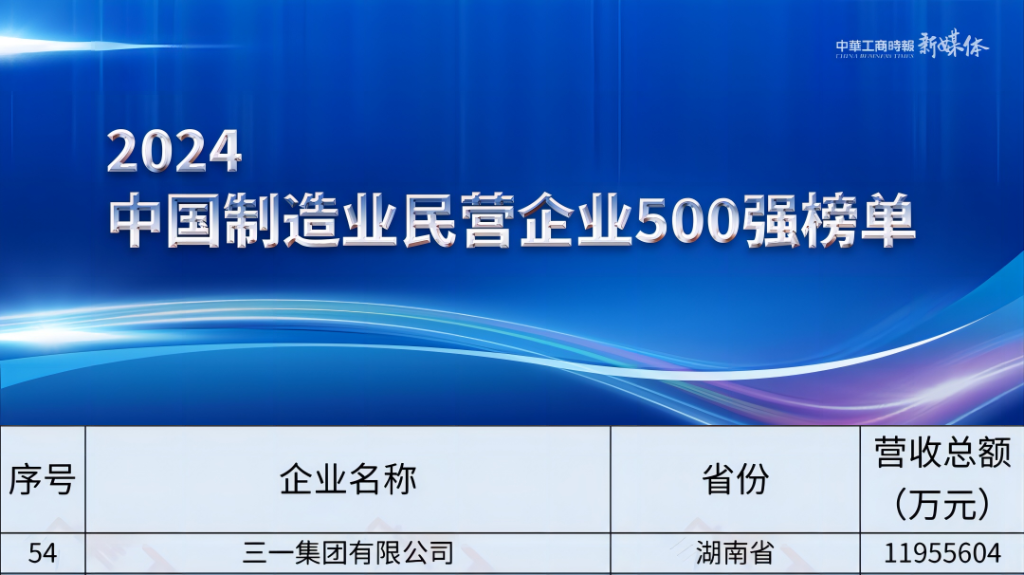 榜单显示,三一集团位列“2024中国民营企业500强”第81位,同时荣膺“2024中国制造业民营企业500强”第54位。 在中国民营企业500强的湖南企业中,三一集团同样排名首位。 今年全国工商联组织开展第26次上规模民营企业调研,共有9642家2023年营业收入5亿元以上的企业参加,其中营业收入前500位的企业为2024中国民营企业500强。 结果显示,面对复杂严峻的国际环境和艰巨繁重的国内改革发展稳定任务,在以习近平同志为核心的党中央坚强领导下,民营企业500强坚定信心、应对挑战,认真践行新发展理念,聚焦主业、做精实业,加强自主创新,走高质量发展道路,整体上呈现稳中有进、质效同升的良好发展态势。 过去一年,围绕全球化、数智化、低碳化战略,三一集团再创历史最佳海外经营业绩、全球化制造布局加速、数智化走深走实、电动化产品市占率遥遥领先、新能源产业业务屡屡突破...... 当前,三一集团坚持高质量发展经营原则,大力推动新质生产力建设,坚定不移地落实“三化”战略,努力建设世界一流企业,为推进中国式现代化作出更大贡献。