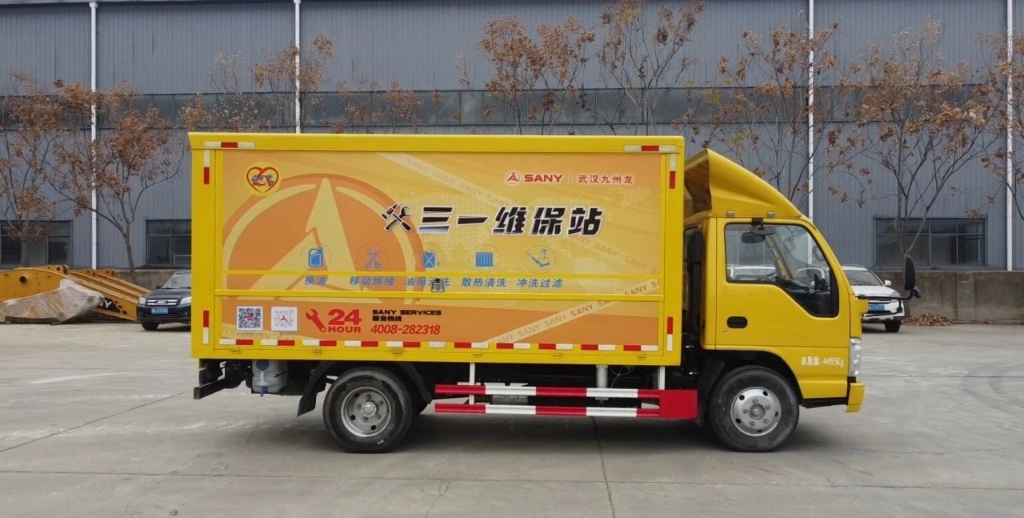 三一武汉德赢VWIN一站式维保站,采用的是箱式货车,这种车型具有轻巧灵活的特点,动力也十分充足有力,能够轻松适应各种复杂的野外工况工作环境。无论工地处于多么偏远的山区、泥泞的洼地或是崎岖的山坡,这辆箱式货车都能顺利抵达,为挖机提供及时的维保服务。